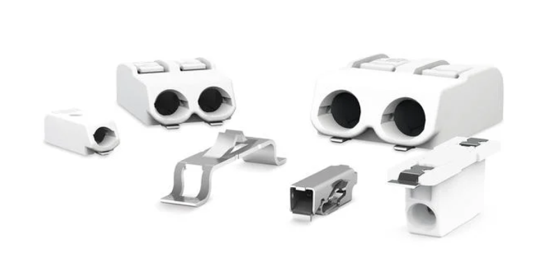 - PUSH-WIRE® connectors for tool-free and twist-free terminations for solid and rigid stranded conductors.