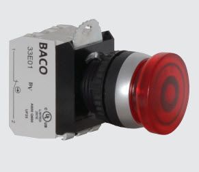 Baco Controls 22mm Pushbutton Illuminated Spring Return 32 Mushroom Black L22AL