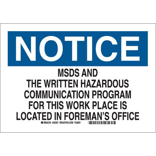 Pack of 1. CHEMICAL & HAZARDOUS MATERIALS SIGN