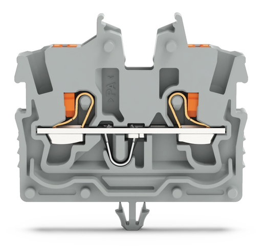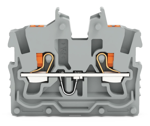2-cond. miniature ground terminal block with push-button 1 mm², green-yellow