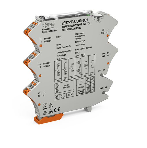Threshold value switches; RTD sensors; 1 make contact; Digital output; Configuration via software; Supply voltage: 24 VDC; 12.5 mm module width; Path