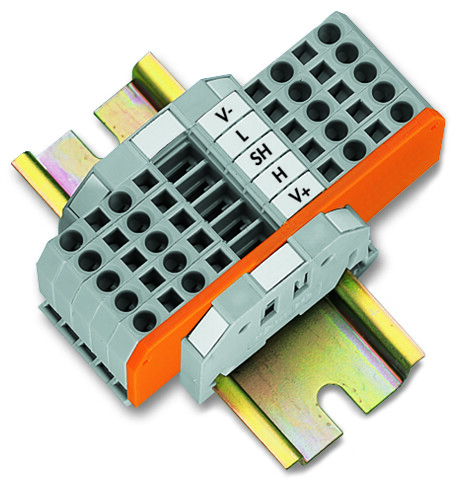 Multi port device tap with mounting foot; 2 trunk cables (input, output); 2 drop cables