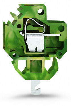 Ground conductor feedthrough terminal block; Conductor/solder/crimp quick disconnect terminal; Plate thickness: 1.5 mm; 4 mm²; Pin spacing 6 mm; 1-pole; CAGE CLAMP®; 4,00 mm²; green-yellow