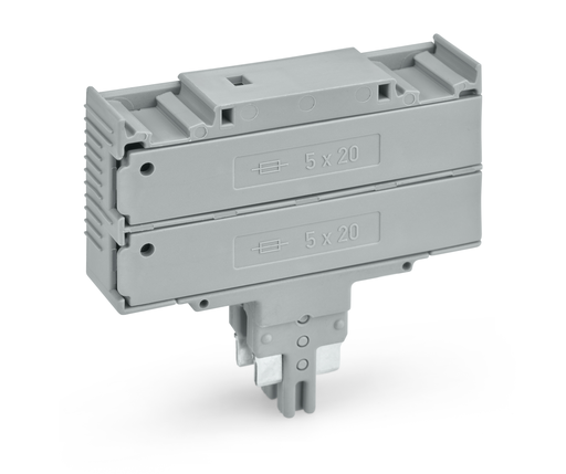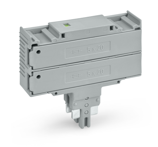 Double fuse plug; for 5 x 20 mm miniature metric fuse; with indicator lamp; 230 V; 10.4 mm wide; gray