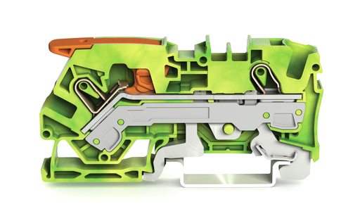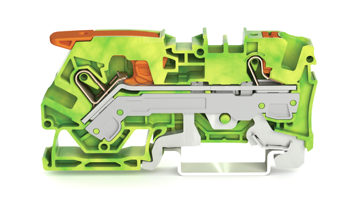 2-conductor ground terminal block; 6 mm²; with test port; side and center marking; for DIN-rail 35 x 15 and 35 x 7.5; Push-in CAGE CLAMP®; 6,00 mm²; green-yellow