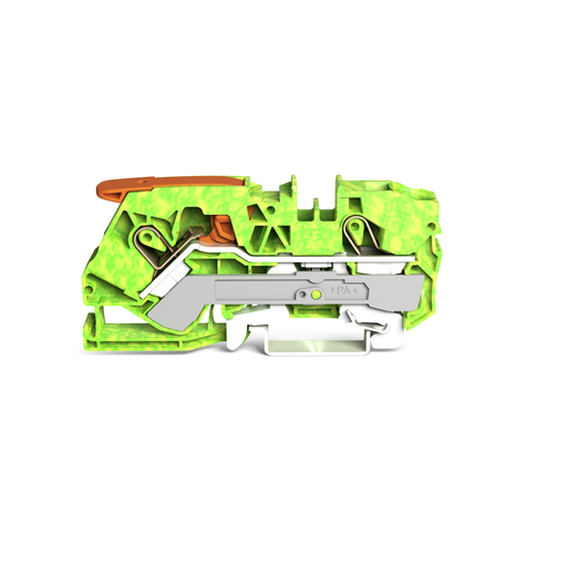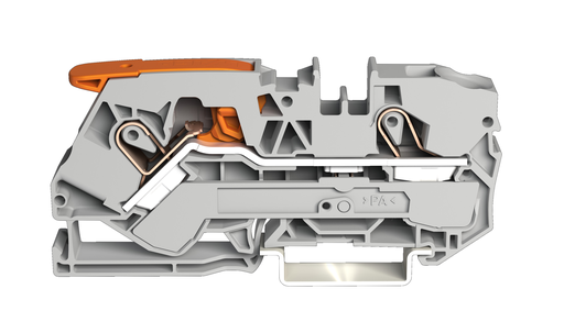 2-conductor through terminal block; with lever and push-button; 10 mm²; with test port; side and center marking; for DIN-rail 35 x 15 and 35 x 7.5; Push-in CAGE CLAMP®; 10,00 mm²; gray