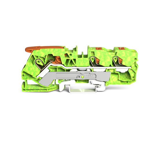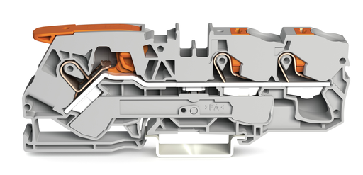 3-conductor through terminal block; with lever and push-button; 10 mm²; with test port; side and center marking; for DIN-rail 35 x 15 and 35 x 7.5; Push-in CAGE CLAMP®; 10,00 mm²; gray