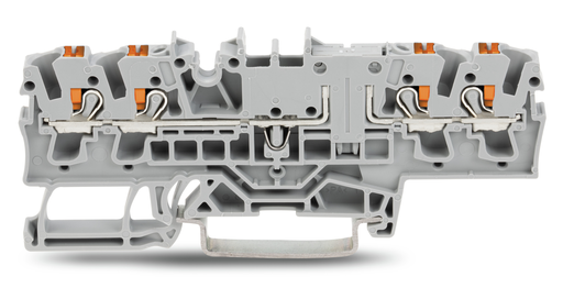 4-conductor through terminal block; with push-button; 2.5 mm²; with test port; side and center marking; for DIN-rail 35 x 15 and 35 x 7.5; Push-in CAGE CLAMP®; 2,50 mm²; gray
