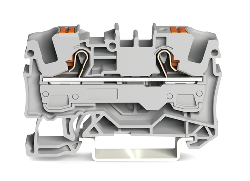 2-conductor through terminal block; with push-button; 6 mm²; with test port; side and center marking; for DIN-rail 35 x 15 and 35 x 7.5; Push-in CAGE CLAMP®; 6,00 mm²; gray