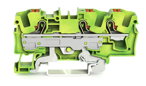 3-conductor ground terminal block; with push-button; 6 mm²; with test port; side and center marking; for DIN-rail 35 x 15 and 35 x 7.5; Push-in CAGE CLAMP®; 6,00 mm²; green-yellow