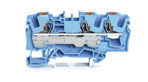 3-conductor through terminal block; with push-button; 6 mm²; with test port; suitable for Ex i applications; side and center marking; for DIN-rail 35 x 15 and 35 x 7.5; Push-in CAGE CLAMP®; 6,00 mm²; blue