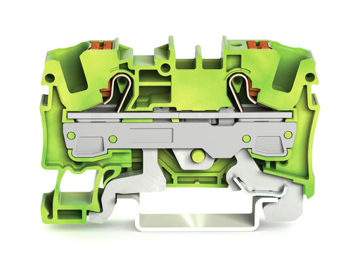 2-conductor ground terminal block; with push-button; 6 mm²; with test port; side and center marking; for DIN-rail 35 x 15 and 35 x 7.5; Push-in CAGE CLAMP®; 6,00 mm²; green-yellow