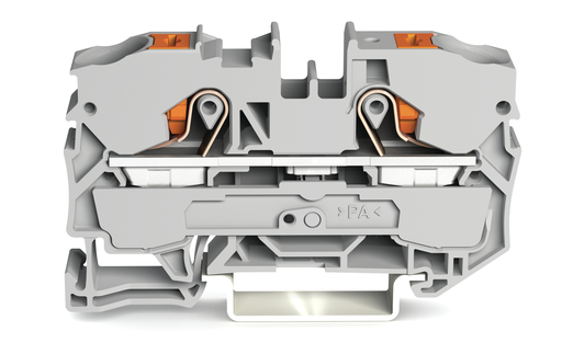 2-conductor through terminal block; with push-button; 10 mm²; with test port; side and center marking; for DIN-rail 35 x 15 and 35 x 7.5; Push-in CAGE CLAMP®; 10,00 mm²; gray