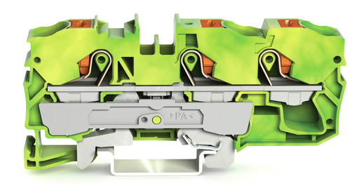 3-conductor ground terminal block; 10 mm²; with test port; side and center marking; for DIN-rail 35 x 15 and 35 x 7.5; Push-in CAGE CLAMP®; 10,00 mm²; green-yellow