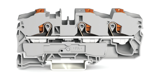 3-conductor through terminal block; with push-button; 16 mm²; with test port; side and center marking; for DIN-rail 35 x 15 and 35 x 7.5; Push-in CAGE CLAMP®; 16,00 mm²; gray