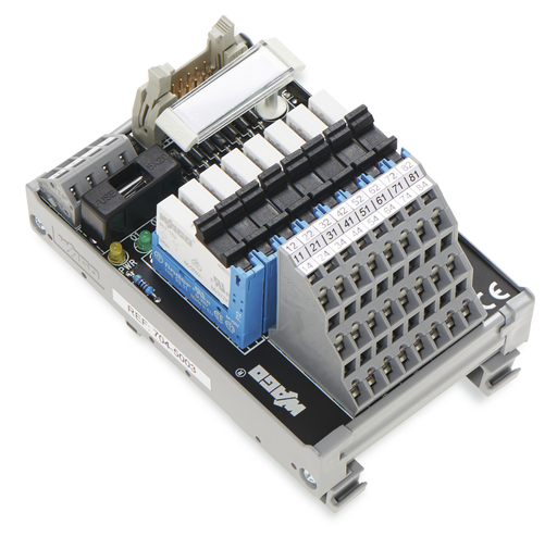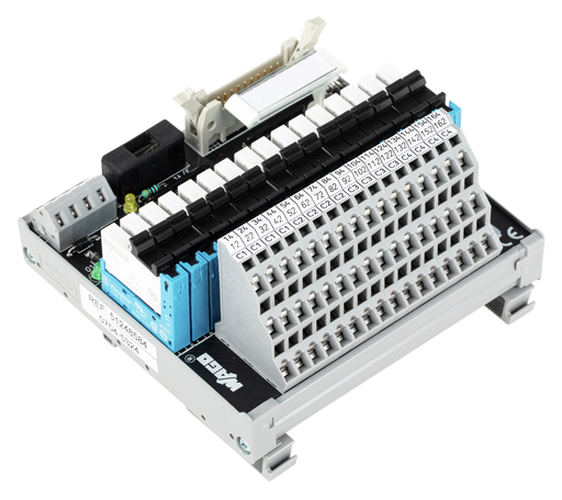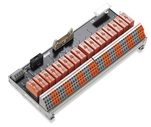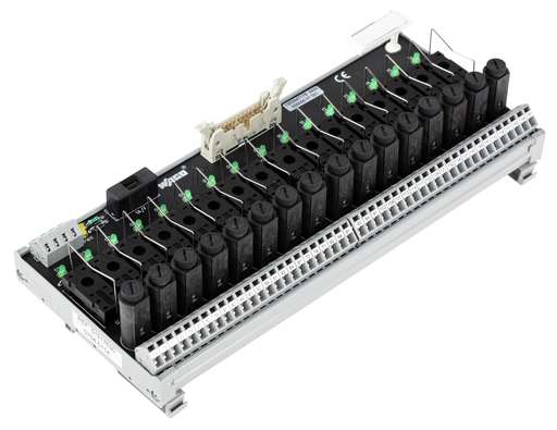 Interface module for system wiring; Pluggable connector per DIN 41651; Male connector; 20-pole; 16-channel relay output; 1 make contact; Double-deck PCB terminal blocks; in mounting carrier