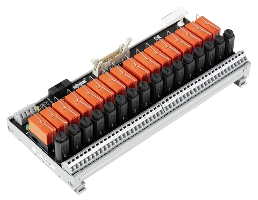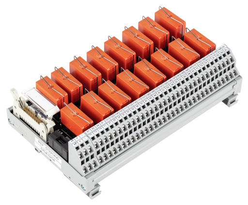 Interface module for system wiring; Pluggable connector per DIN 41651; 20-pole; 16-channel relay output; 1 changeover contact; PCB terminal blocks; in mounting carrier